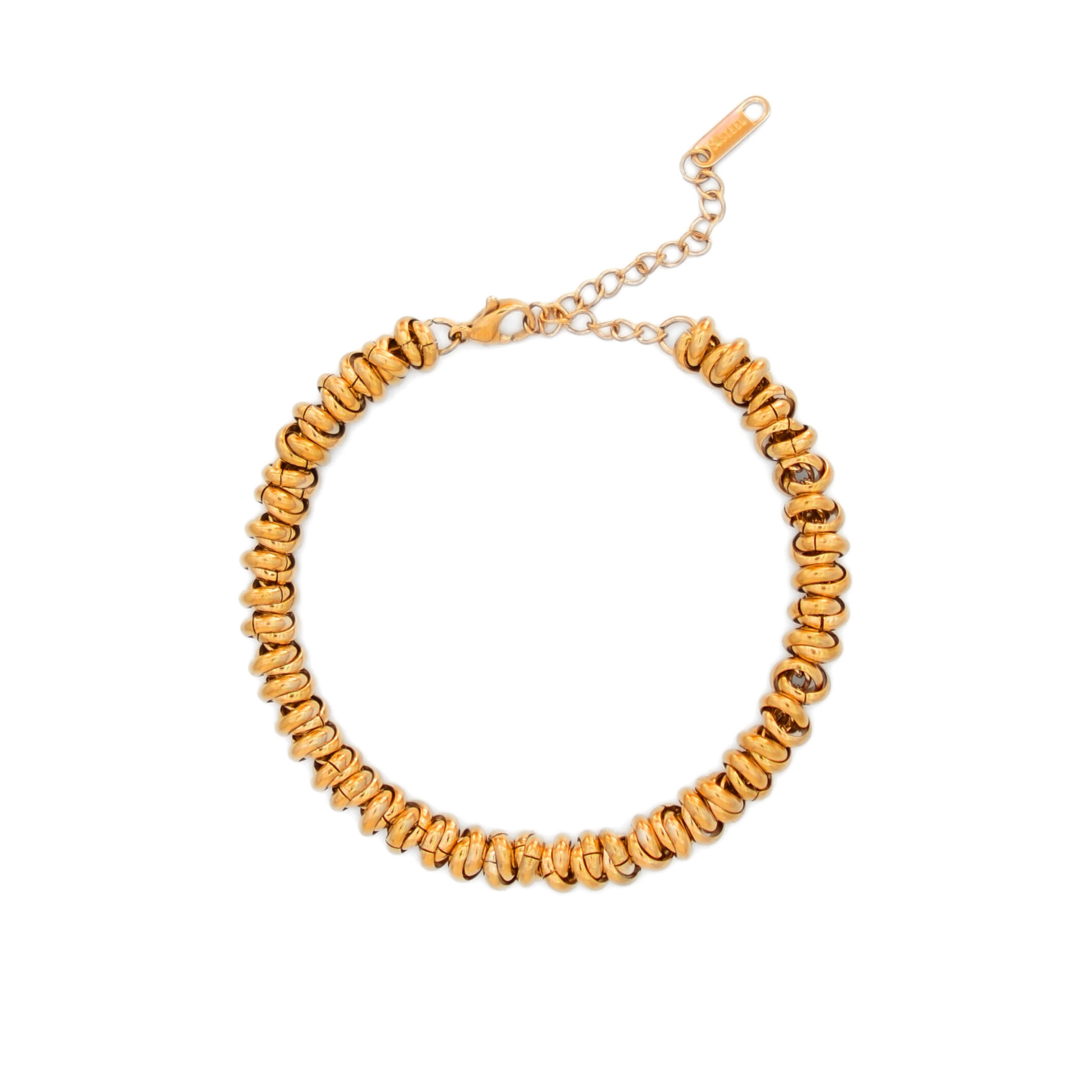 Brățara Chunkie. Realizați din oțel inoxidabil 316L și placați cu aur de 18K, sunt rezistenți la apă, nu se oxidează și sunt hipoalergenici – concepuți pentru a fi purtați zilnic, fără decolorare sau disconfort.