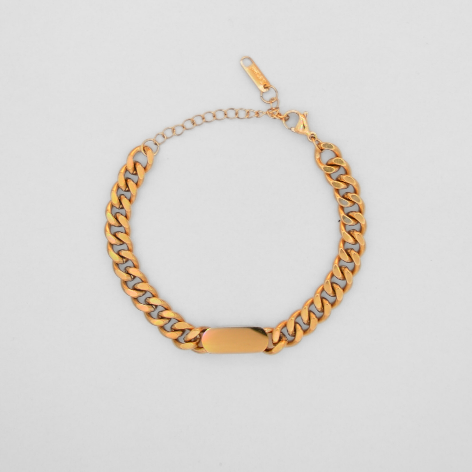 Brățara Cuban link. Realizați din oțel inoxidabil 316L și placați cu aur de 18K, sunt rezistenți la apă, nu se oxidează și sunt hipoalergenici – concepuți pentru a fi purtați zilnic, fără decolorare sau disconfort.