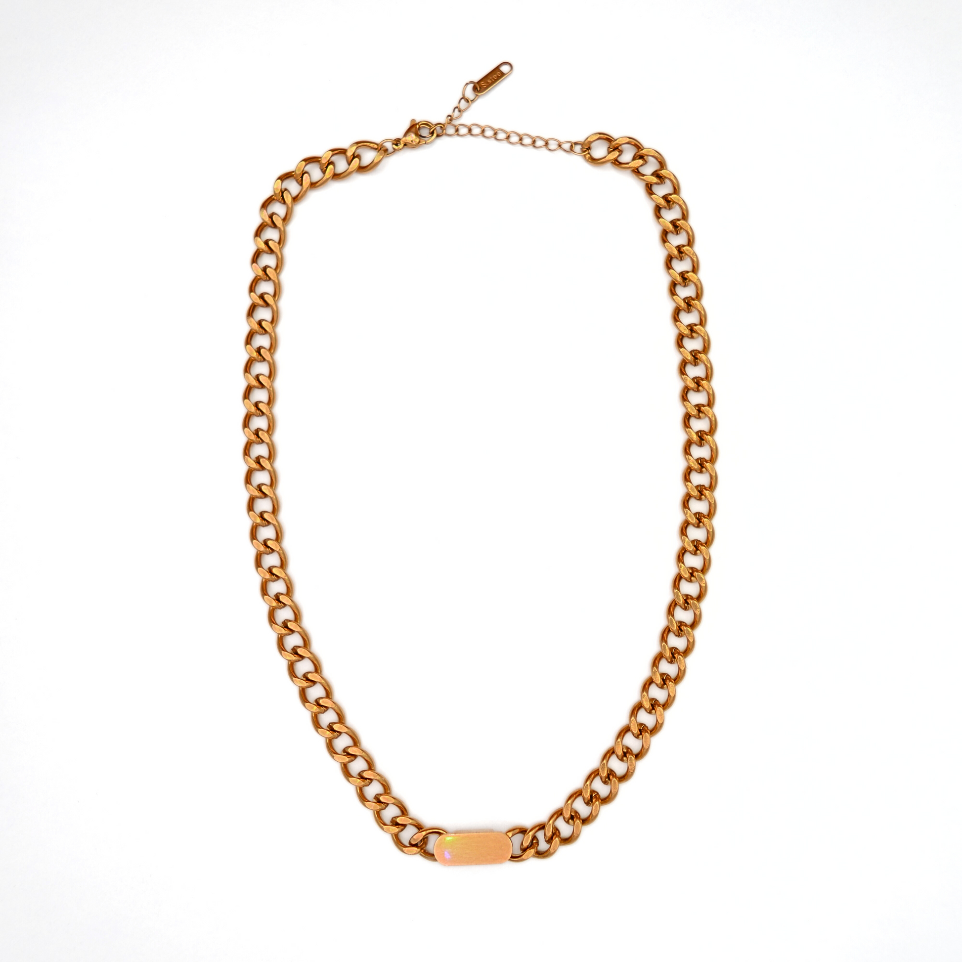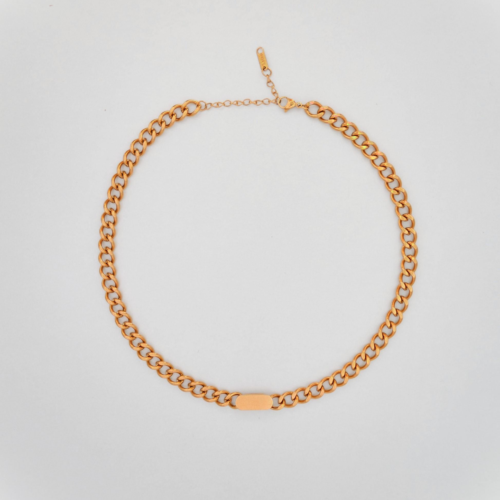 Colierul Cuban Link. Realizați din oțel inoxidabil 316L și placați cu aur de 18K, sunt rezistenți la apă, nu se oxidează și sunt hipoalergenici – concepuți pentru a fi purtați zilnic, fără decolorare sau disconfort.