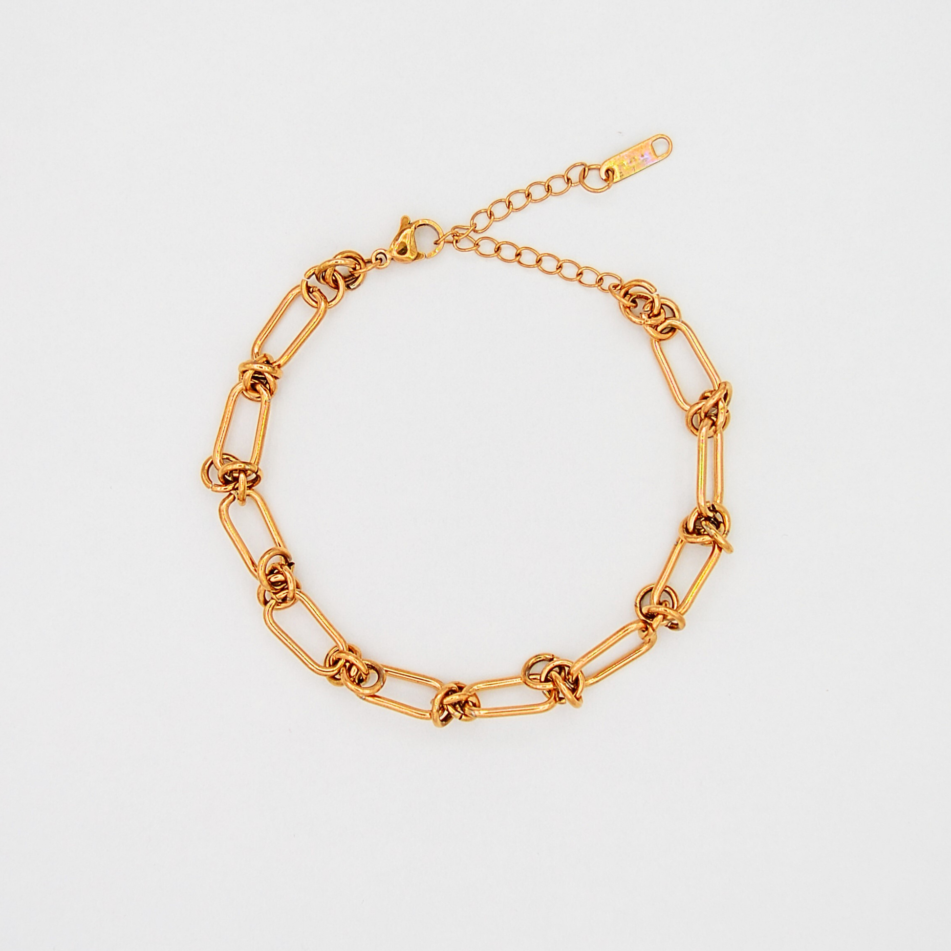 Brățara Doggie. Realizați din oțel inoxidabil 316L și placați cu aur de 18K, sunt rezistenți la apă, nu se oxidează și sunt hipoalergenici – concepuți pentru a fi purtați zilnic, fără decolorare sau disconfort.