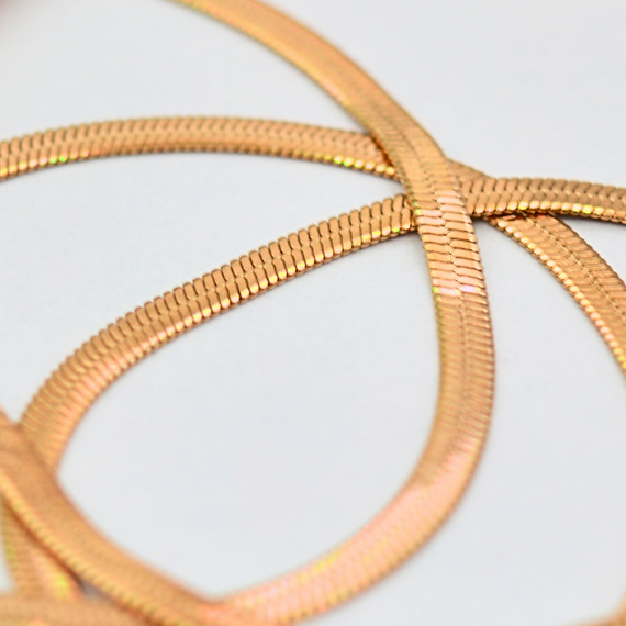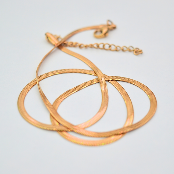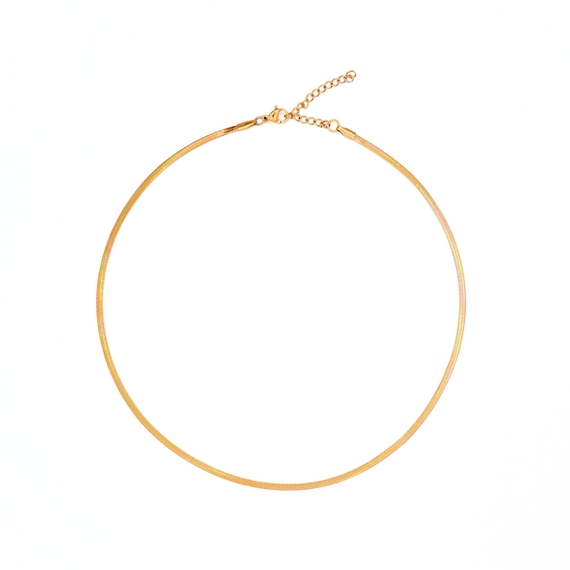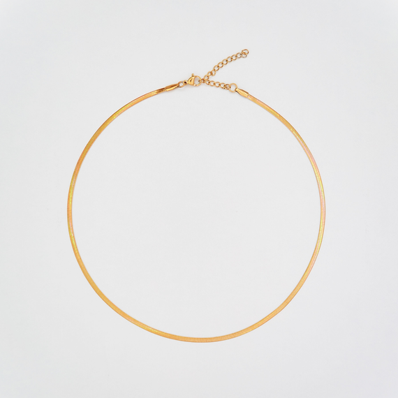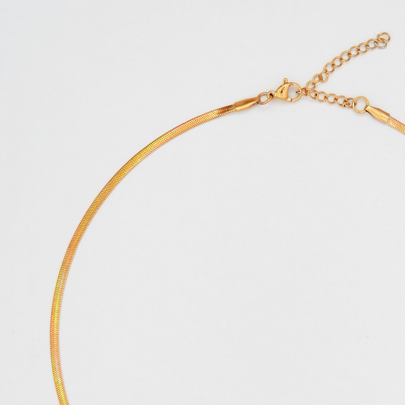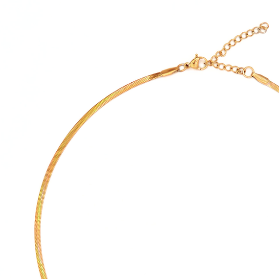 Colierul Flat snake este fabricat din oțel inoxidabil 316L premium și placat cu aur radiant de 18K , oferind o strălucire luxoasă care nu va păta, nu va decolora și nu va irita pielea sensibilă.
