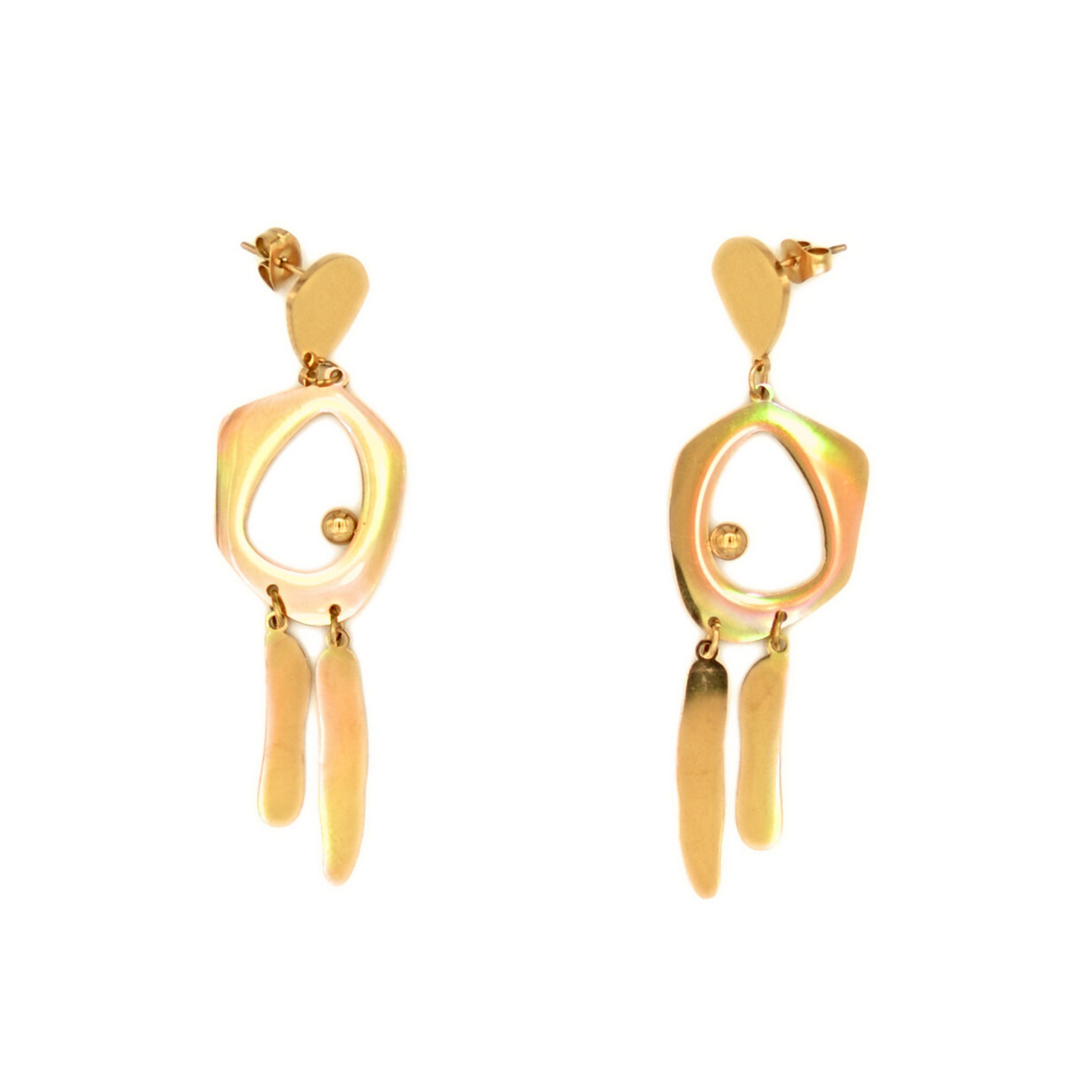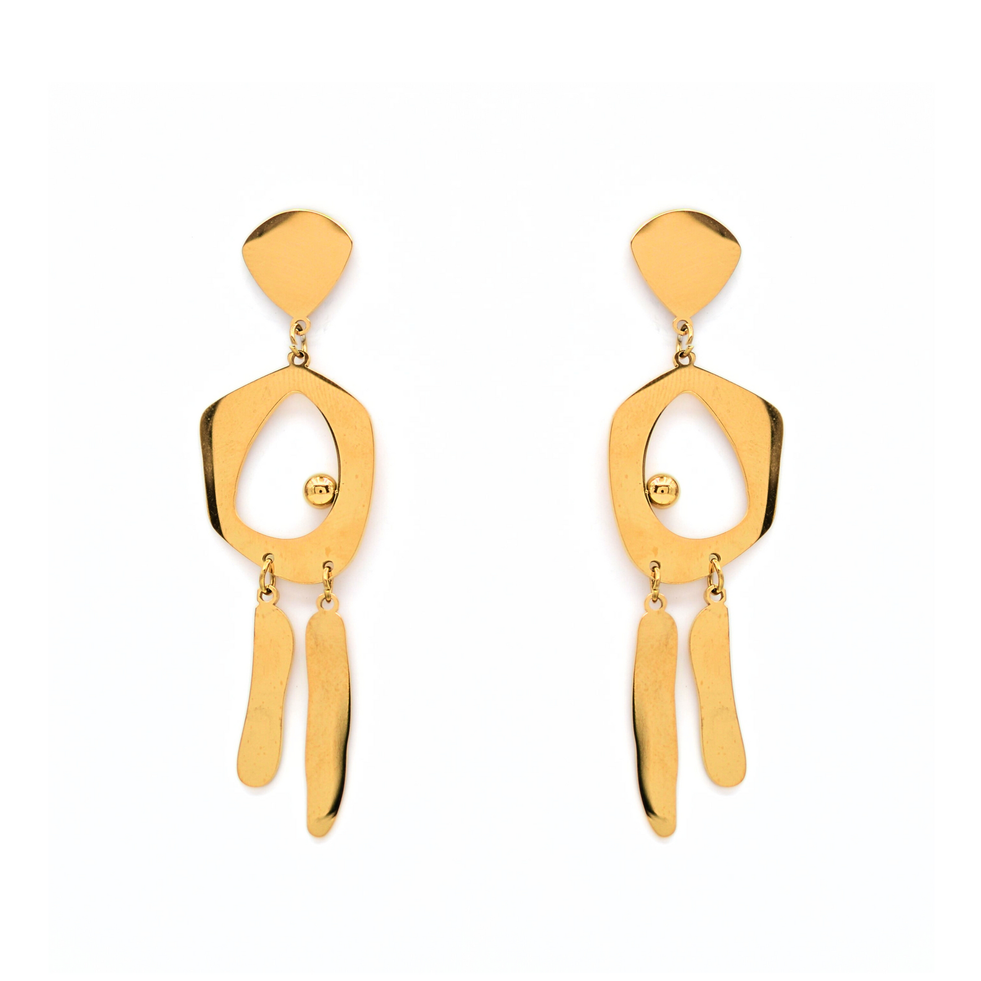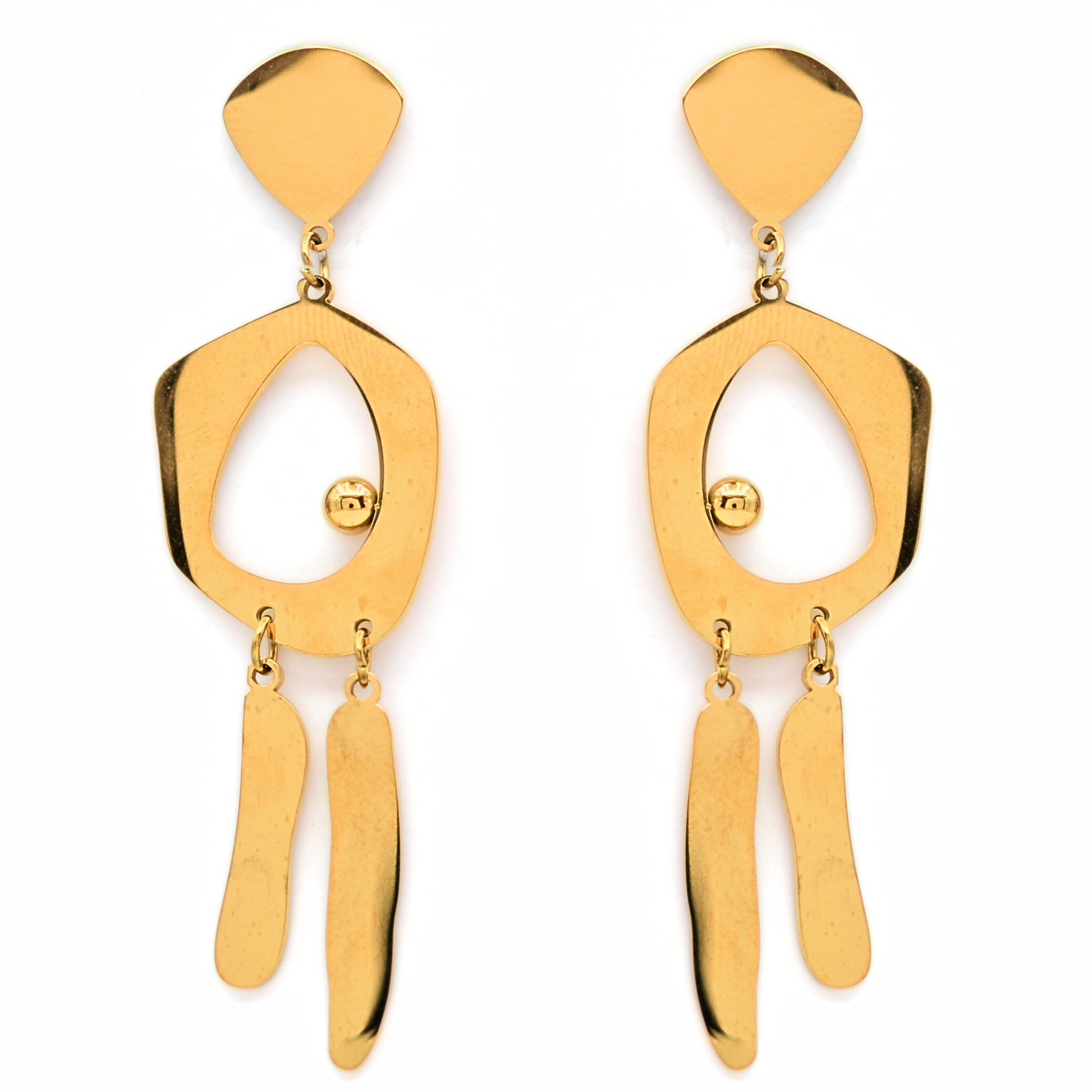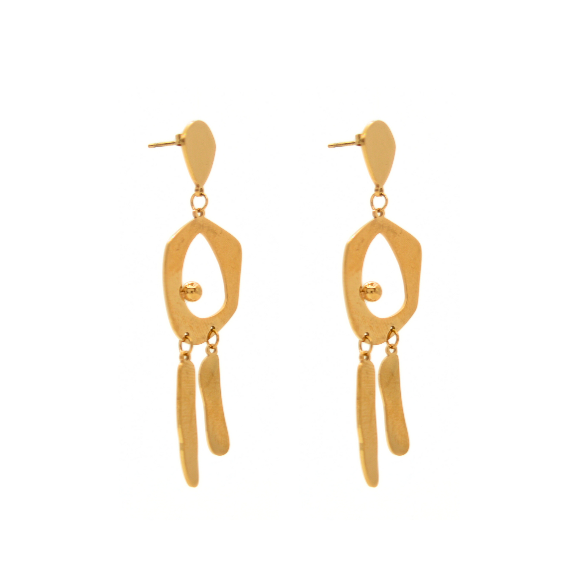 Cerceii Iroquois. Realizați din oțel inoxidabil 316L și placați cu aur de 18K, sunt rezistenți la apă, nu se oxidează și sunt hipoalergenici – concepuți pentru a fi purtați zilnic, fără decolorare sau disconfort.