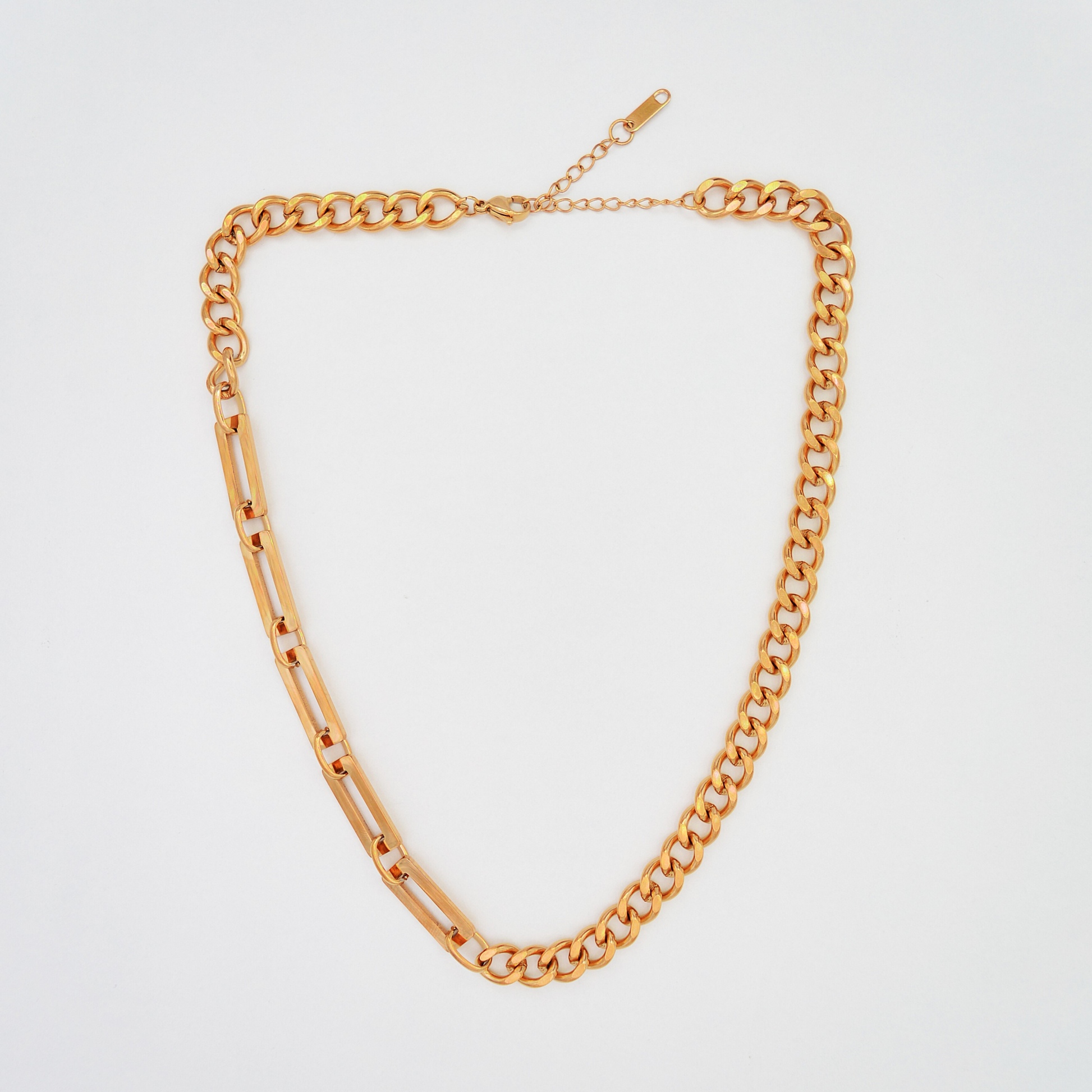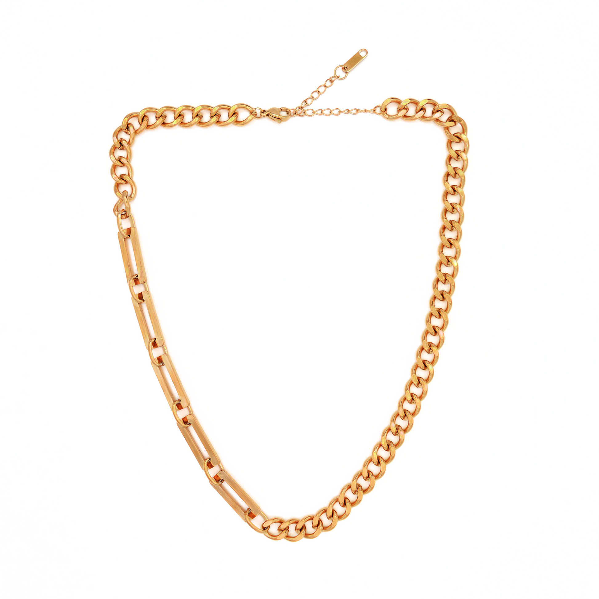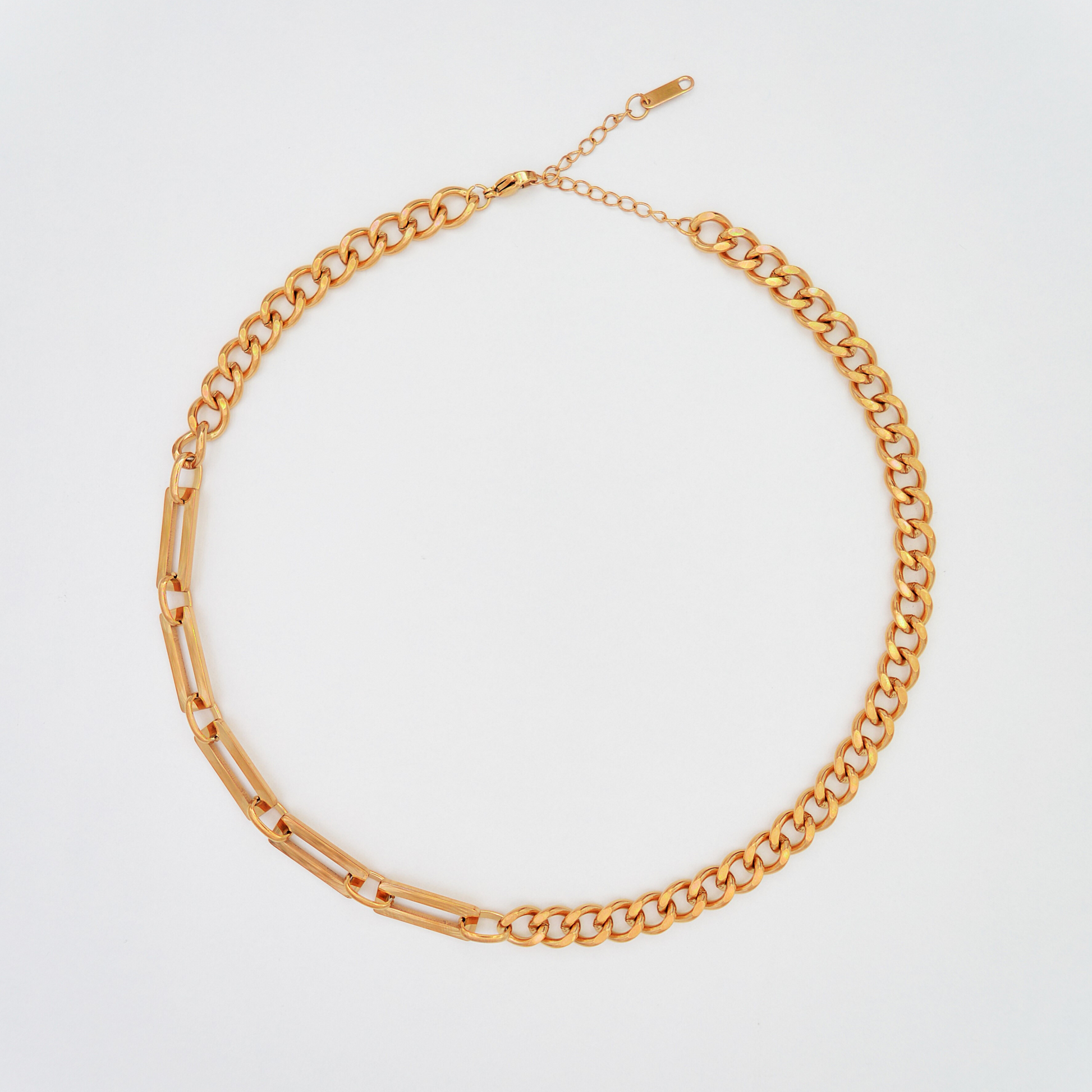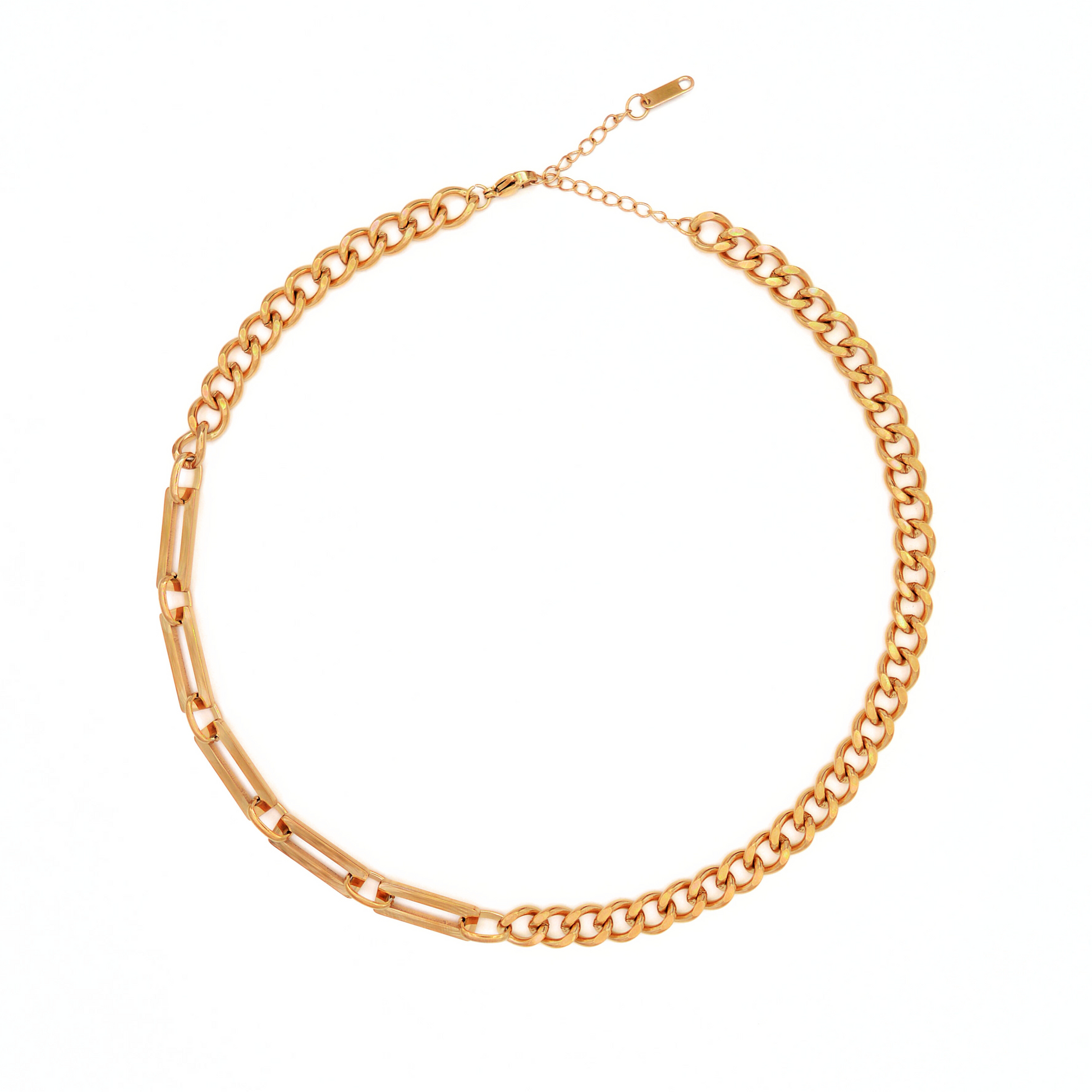 Colierul Keeper. Fabricati din oțel inoxidabil 316L și placați cu aur de 18K, sunt rezistenți la apă, nu se oxidează și sunt hipoalergenici – concepuți pentru a fi purtați zilnic, fără decolorare sau disconfort.