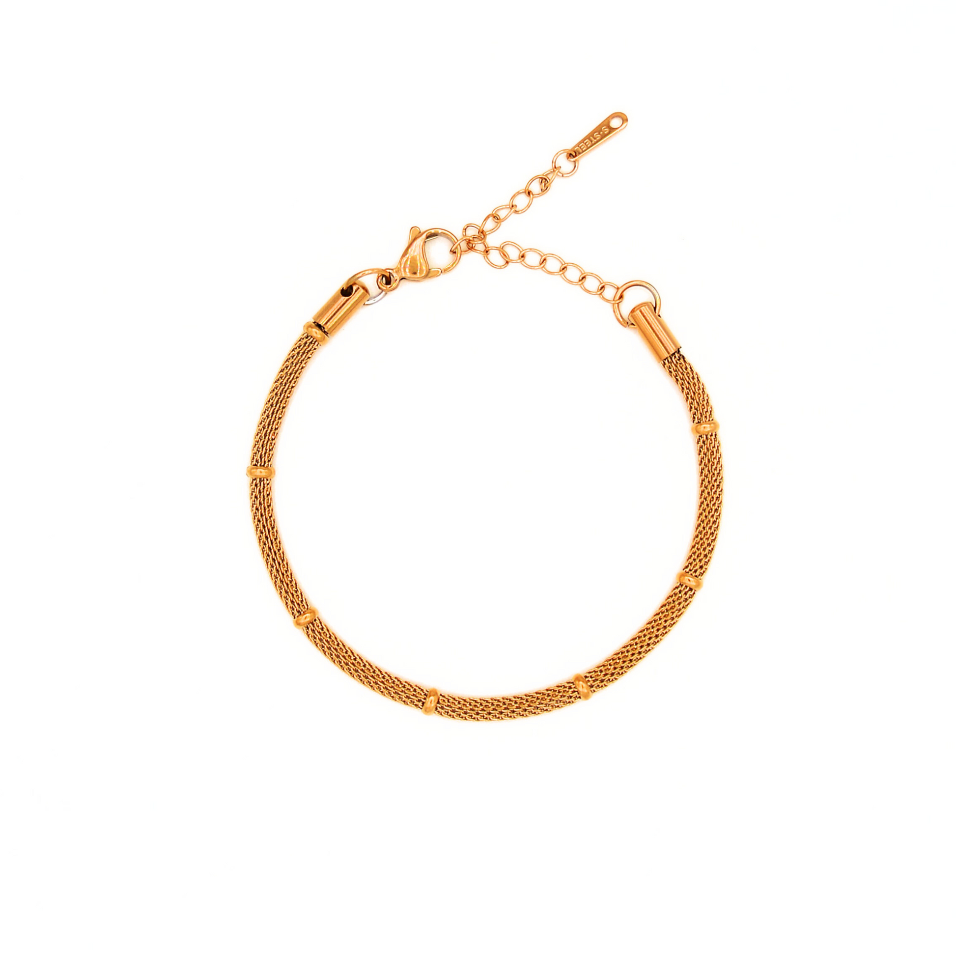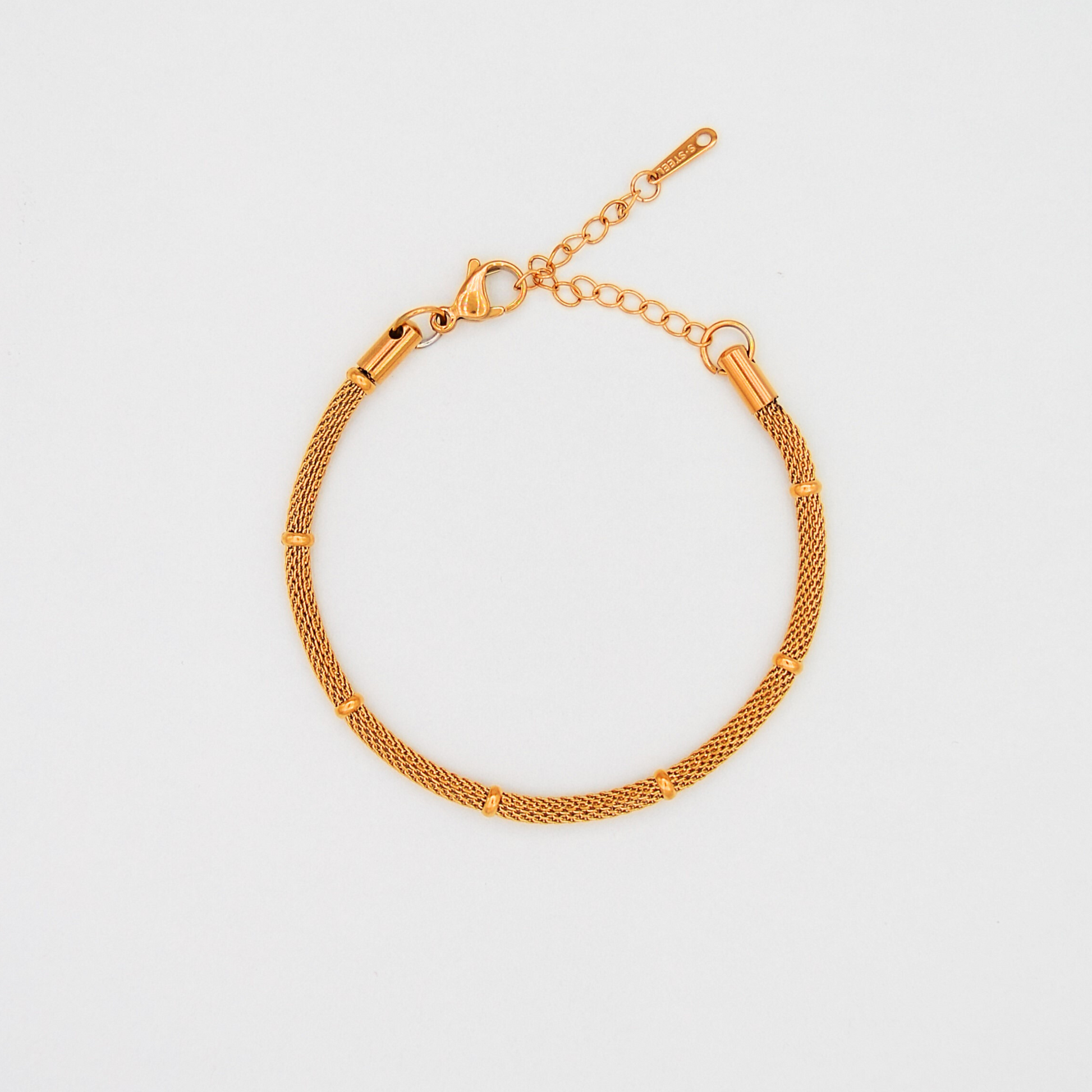 Brățara Mirthil este realizată din oțel inoxidabil 316L premium și placată cu aur de 18K , oferind o strălucire luxoasă care nu va păta, nu se decolorează și nu va irita pielea sensibilă. Stil minimalist îndrăzneț pentru fiecare zi.