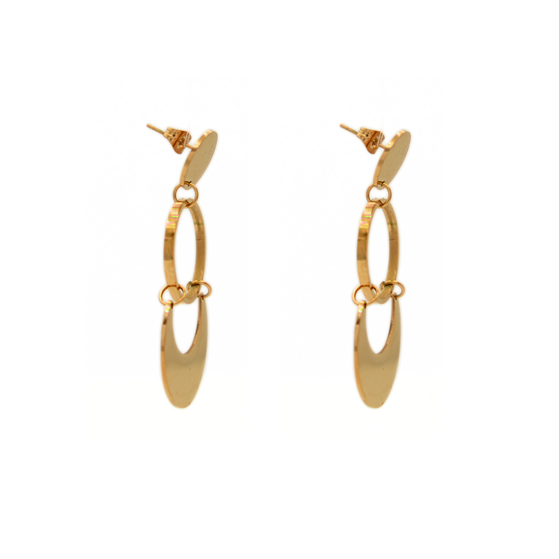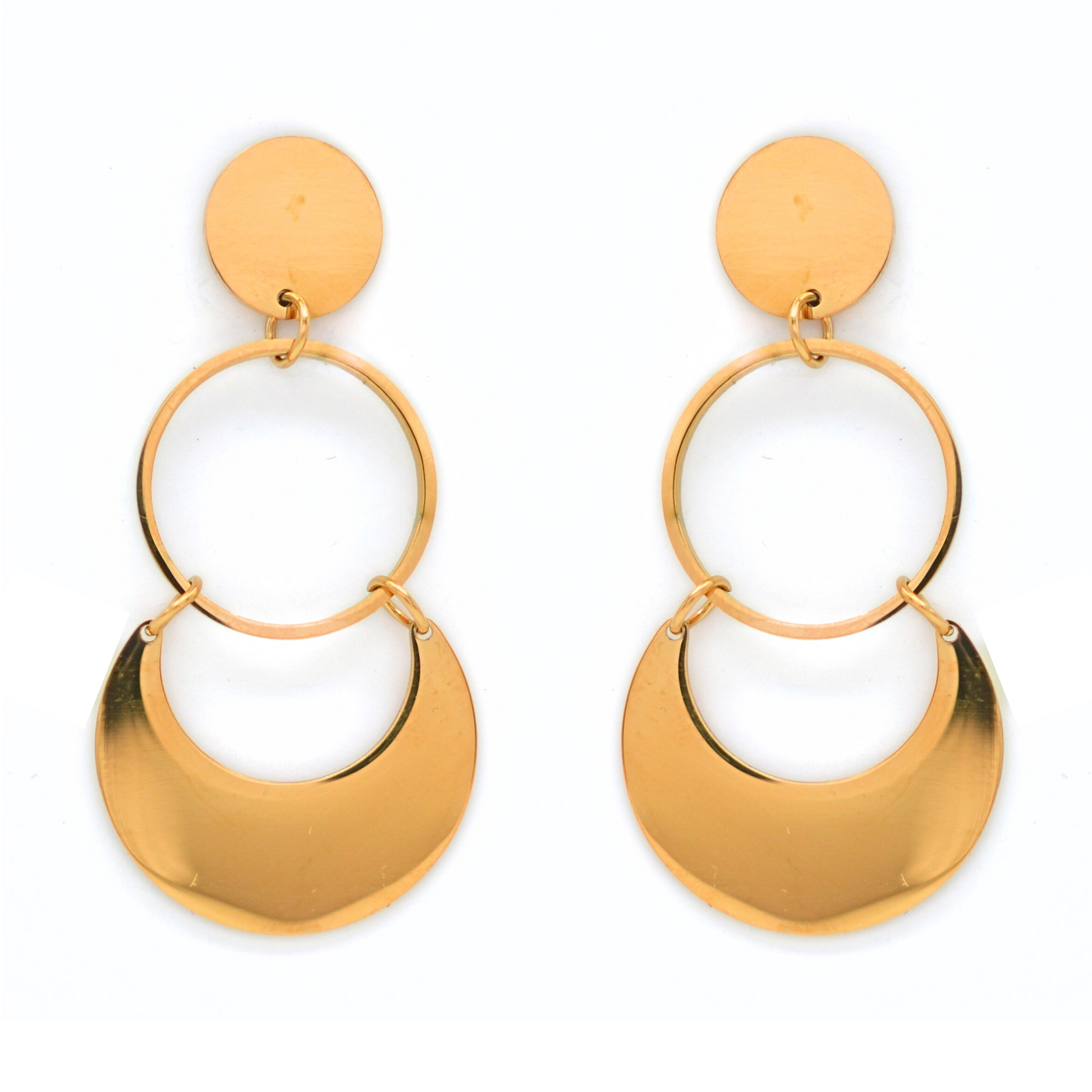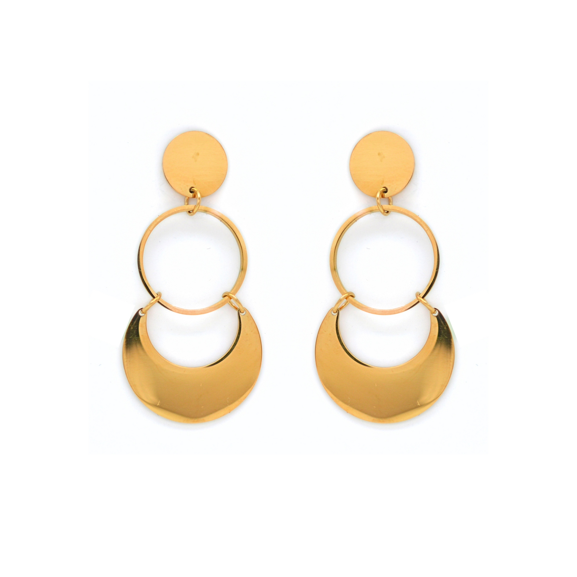 Cerceii Mooners. Realizați din oțel inoxidabil 316L și placați cu aur de 18K, sunt rezistenți la apă, nu se oxidează și sunt hipoalergenici – concepuți pentru a fi purtați zilnic, fără decolorare sau disconfort.
