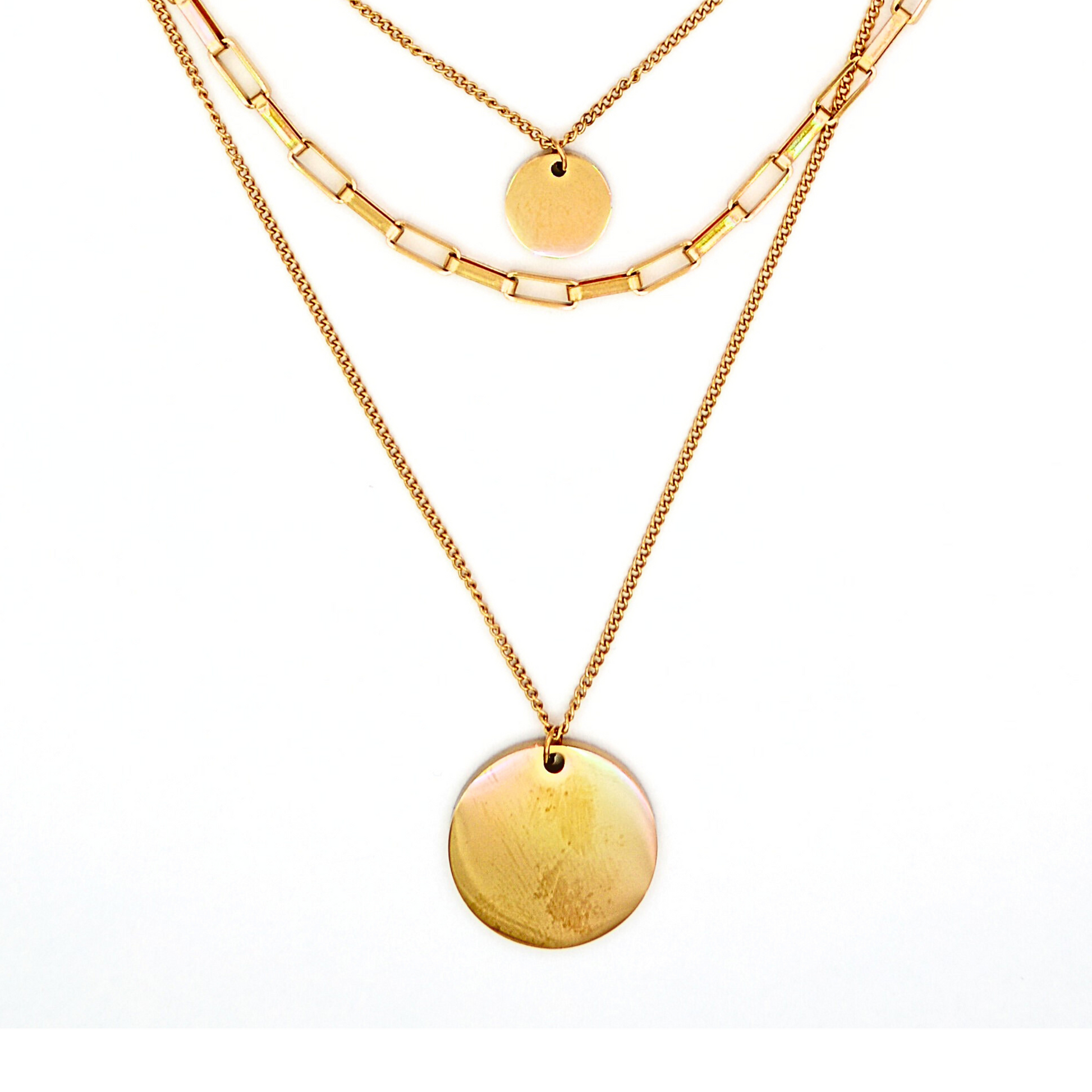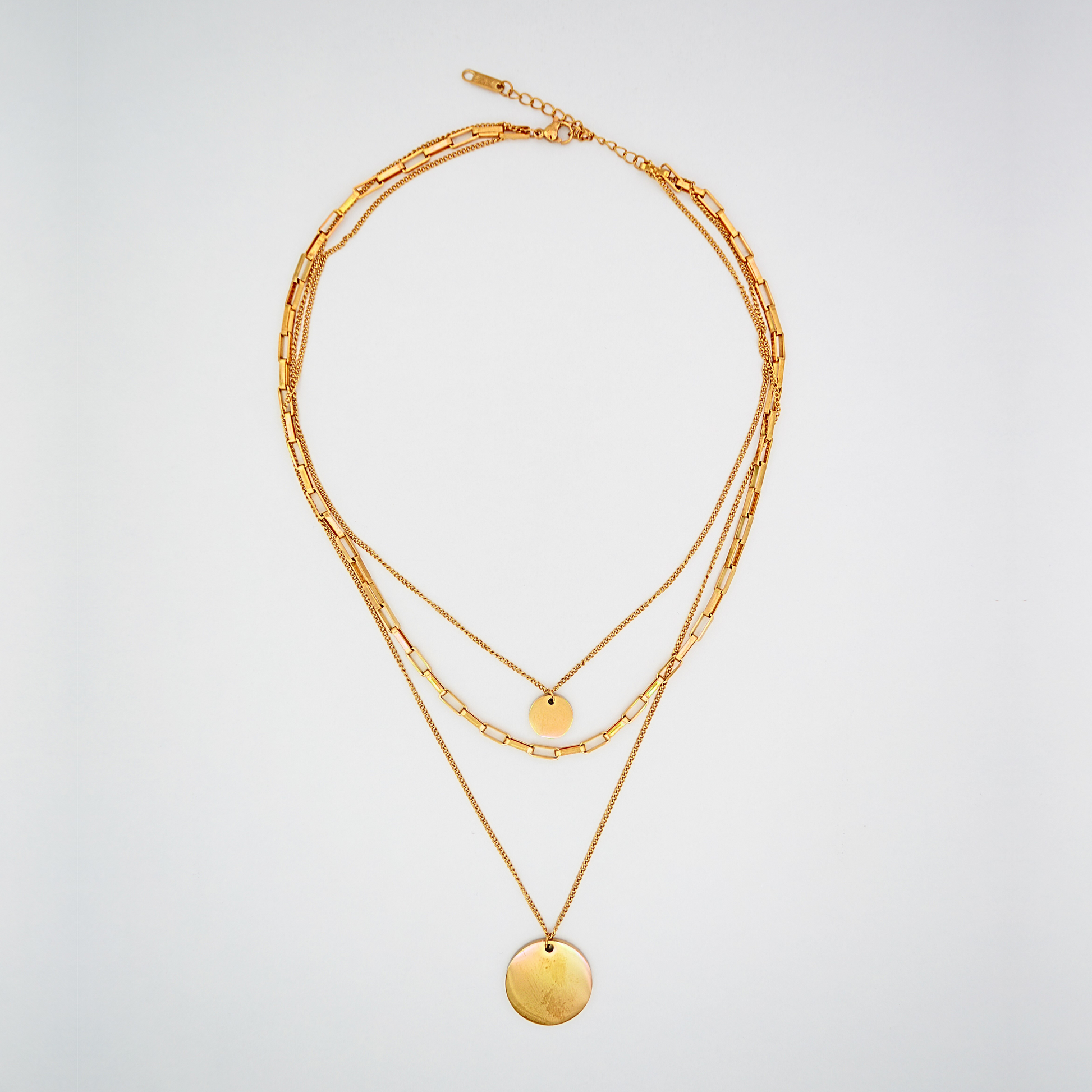 Colierul Solar. Realizați din oțel inoxidabil 316L și placați cu aur de 18K, sunt rezistenți la apă, nu se oxidează și sunt hipoalergenici – concepuți pentru a fi purtați zilnic, fără decolorare sau disconfort.