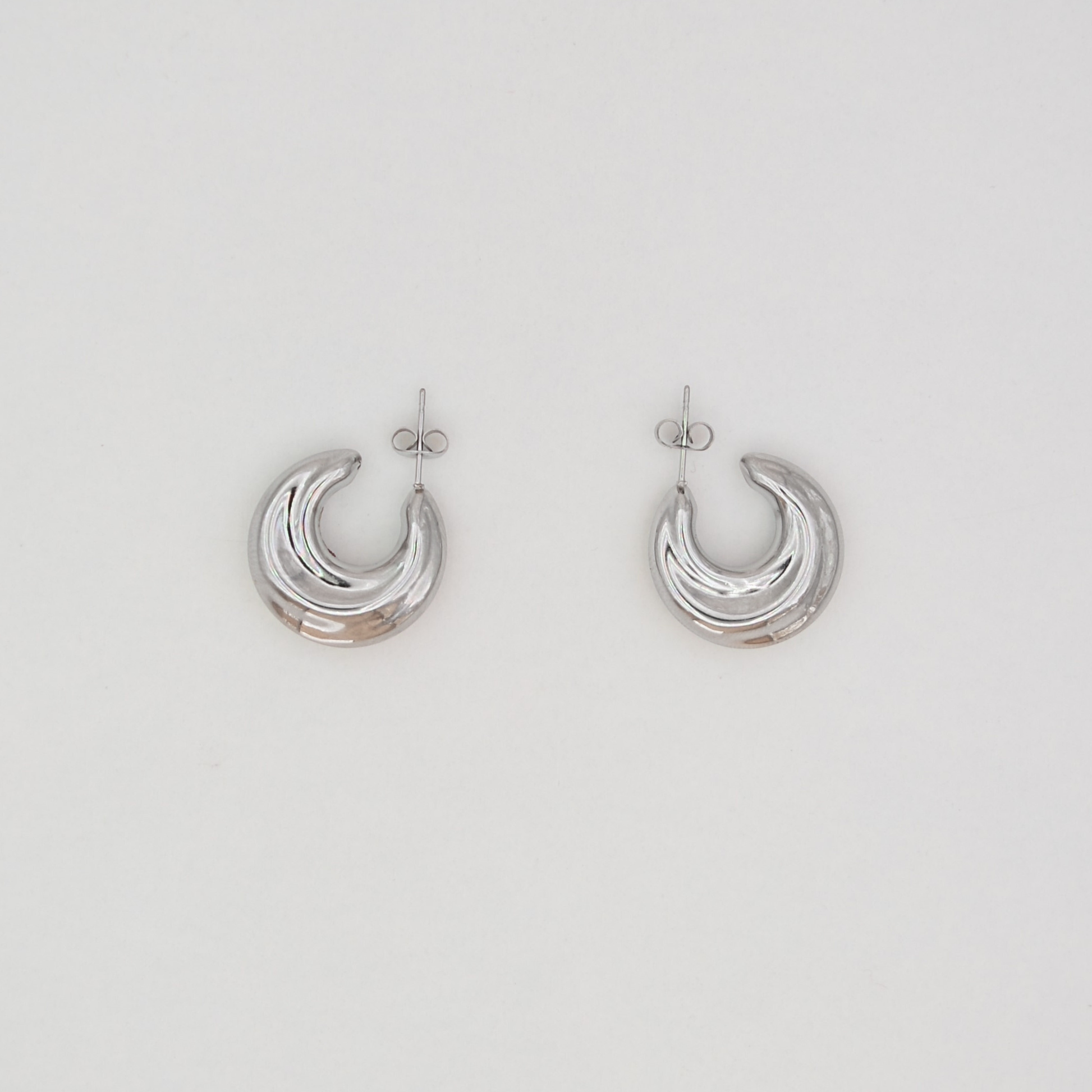Cerceii Spookie. Realizați din oțel inoxidabil 316L, sunt rezistenți la apă, nu se oxidează și sunt hipoalergenici – concepuți pentru a fi purtați zilnic, fără decolorare sau disconfort.