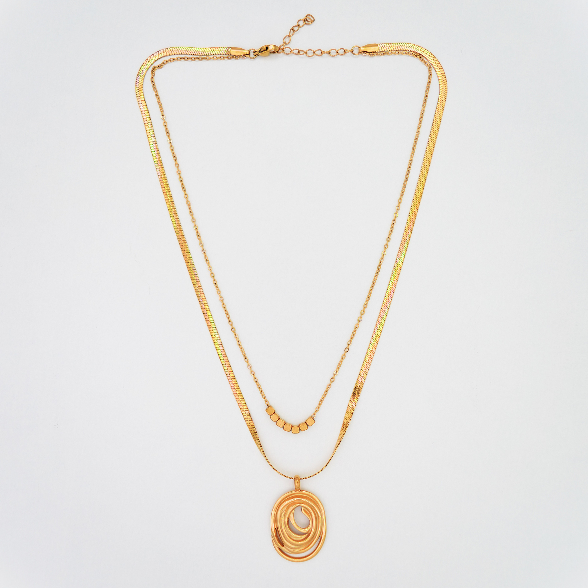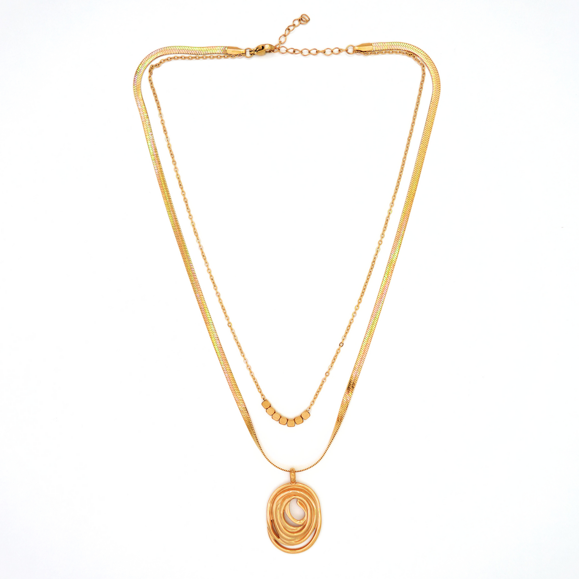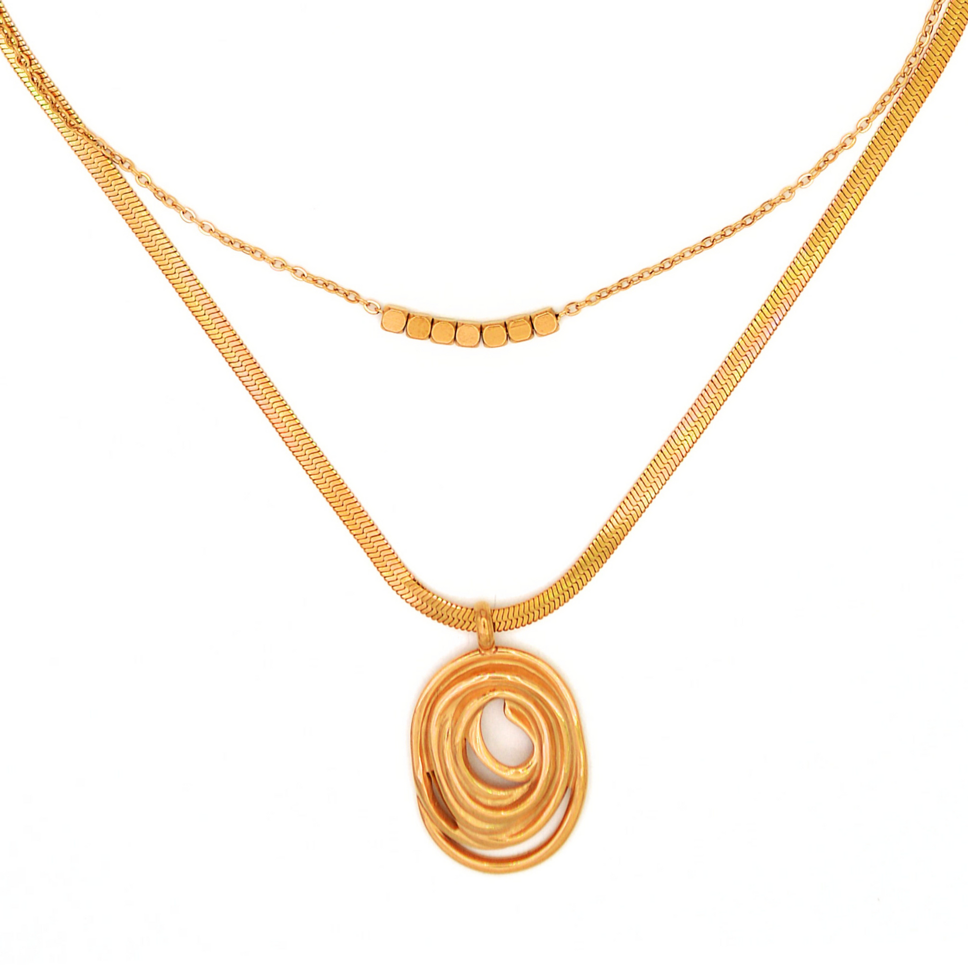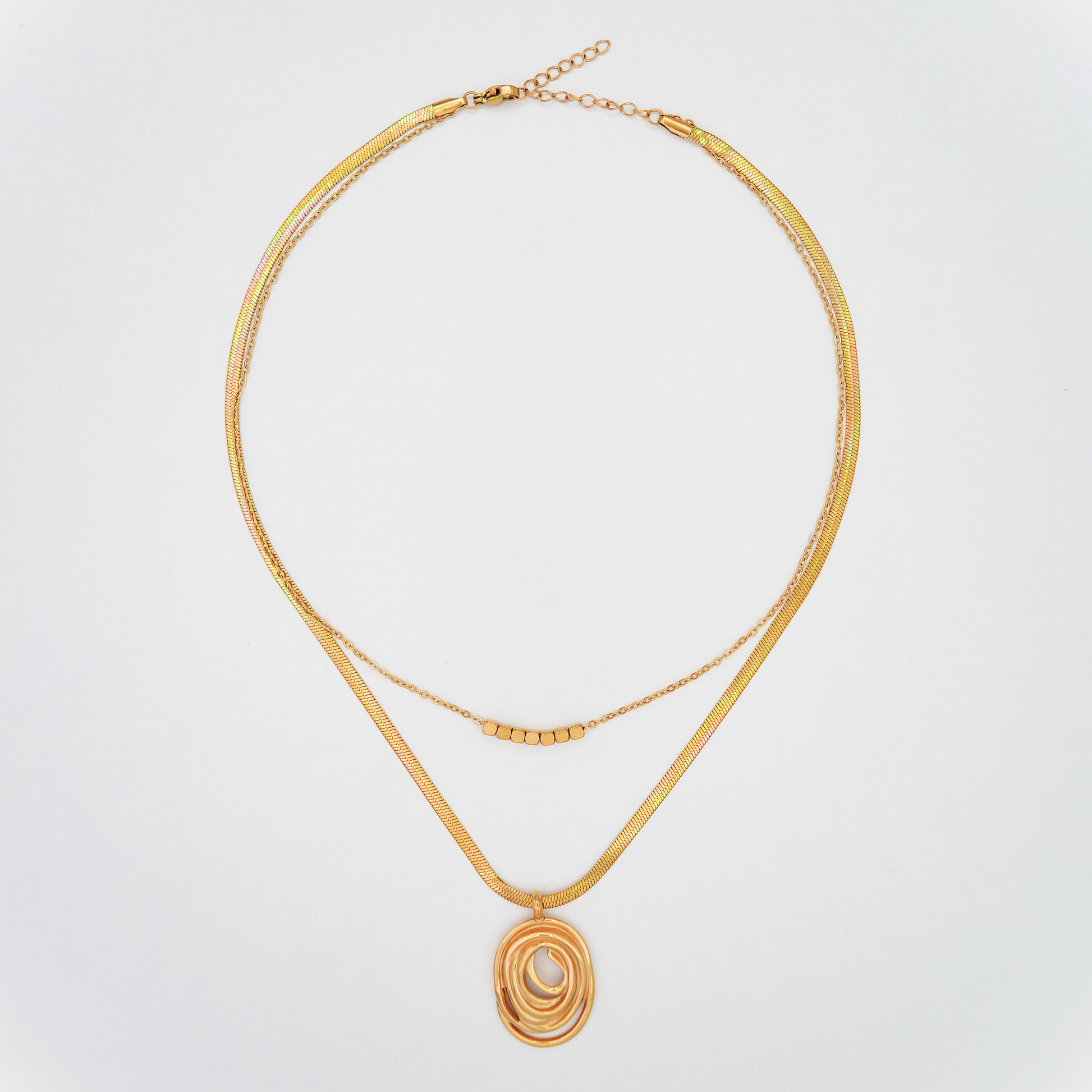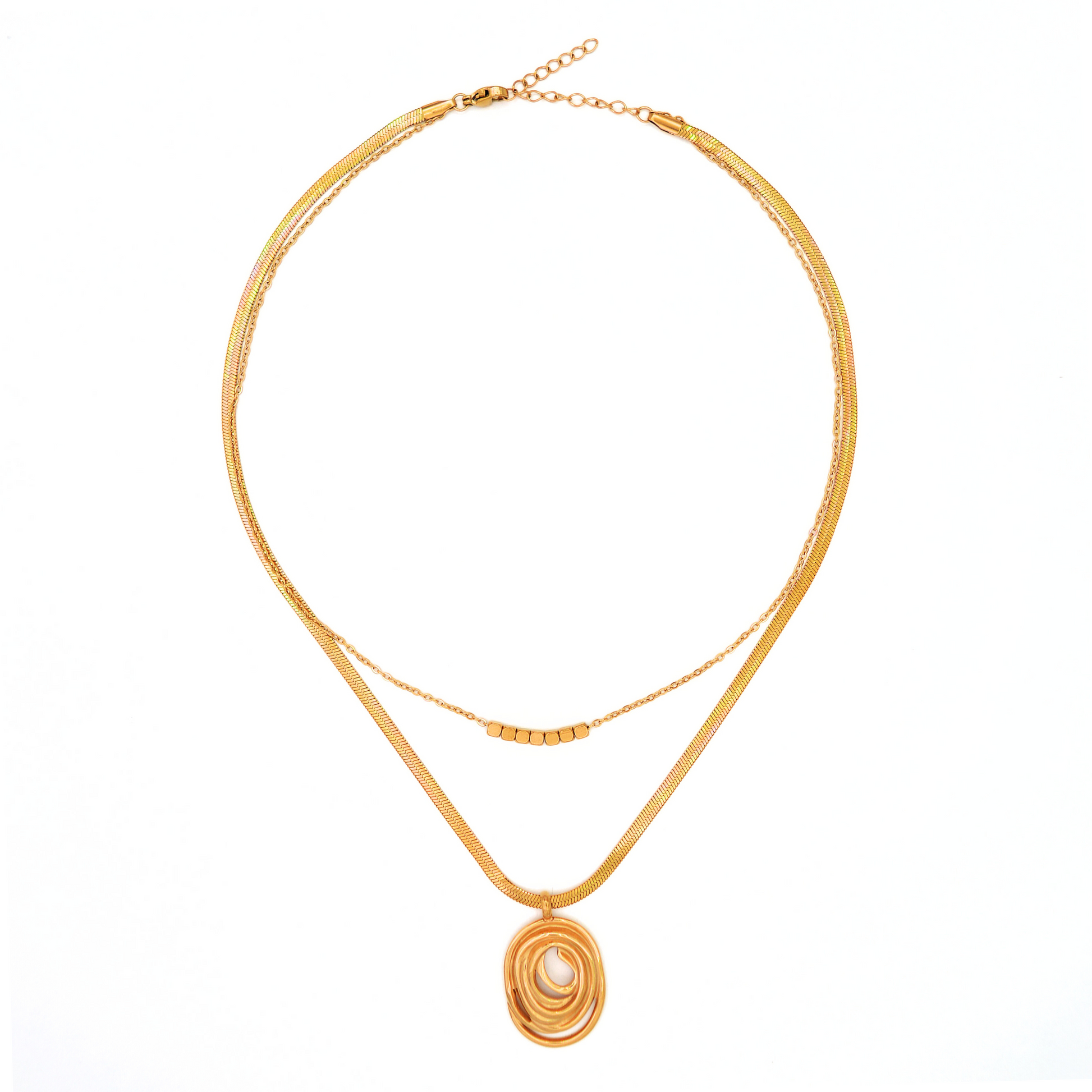 Colierul Tanglie. Realizați din oțel inoxidabil 316L și placați cu aur de 18K, sunt rezistenți la apă, nu se oxidează și sunt hipoalergenici – concepuți pentru a fi purtați zilnic, fără decolorare sau disconfort.